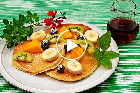 ヨーグルトを入れることでしっとりとフルーツに合うパンケーキになります。