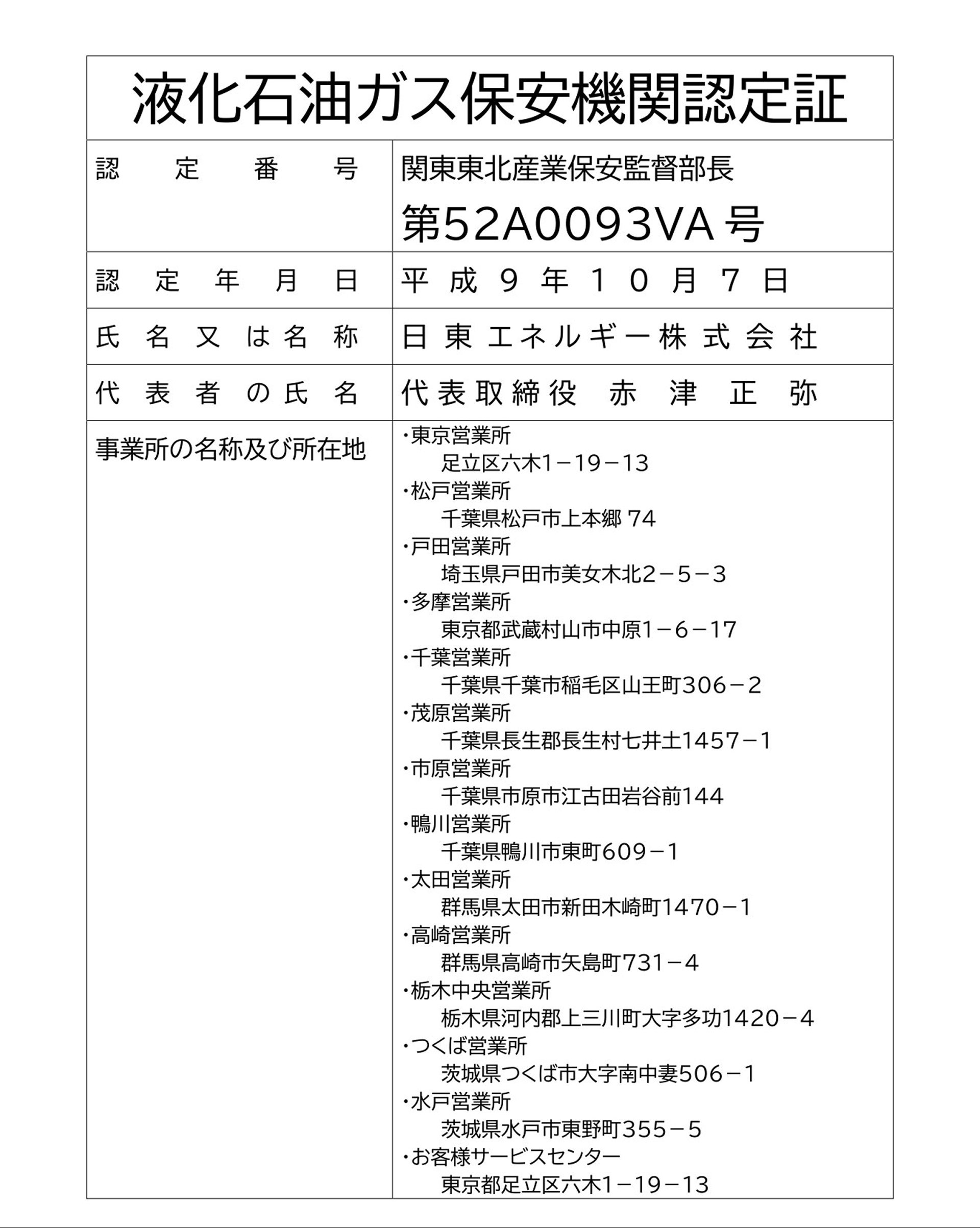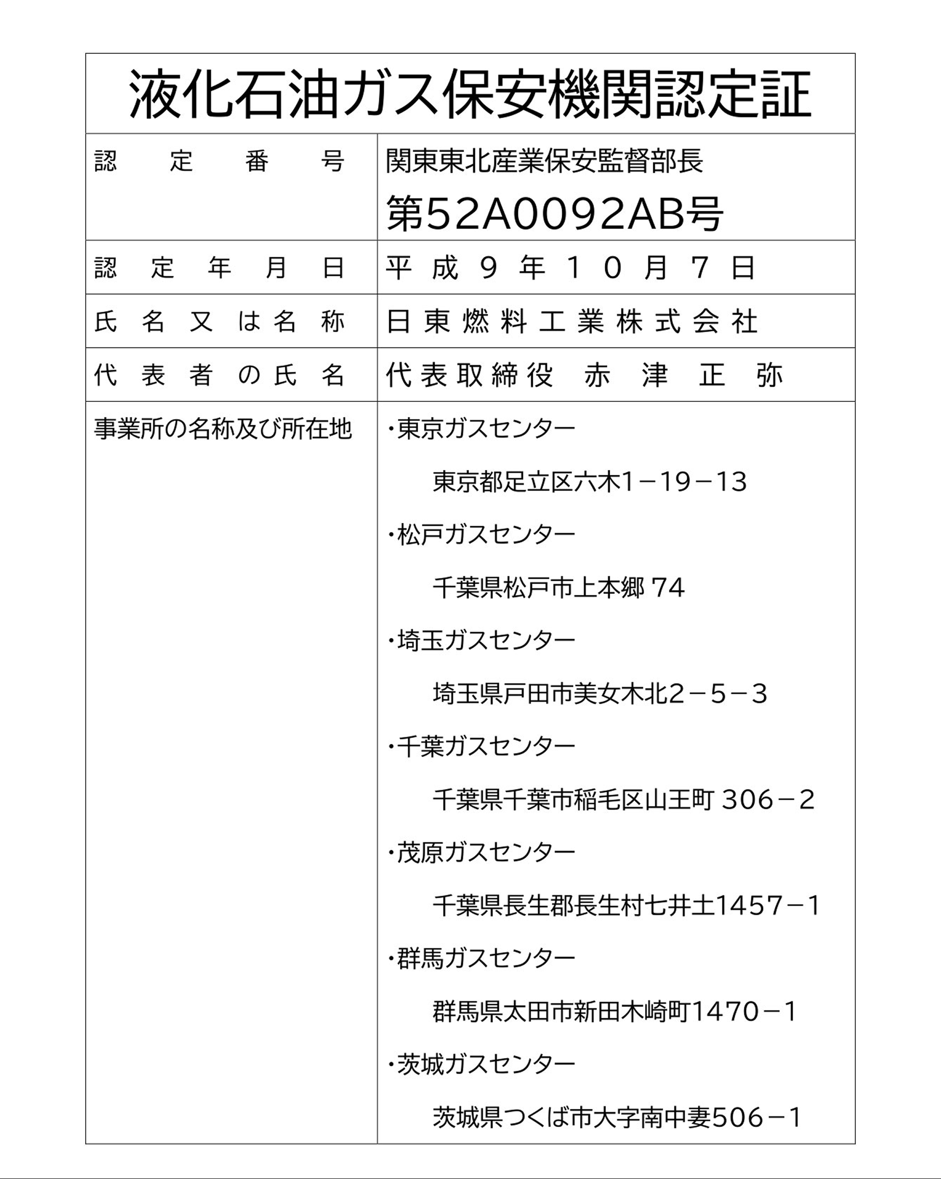 液化石油ガス保安機関認定証