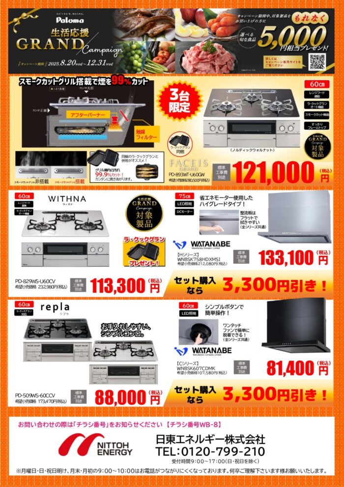給湯器、ガスコンロなどのガス機器をイベント特別価格でご奉仕。