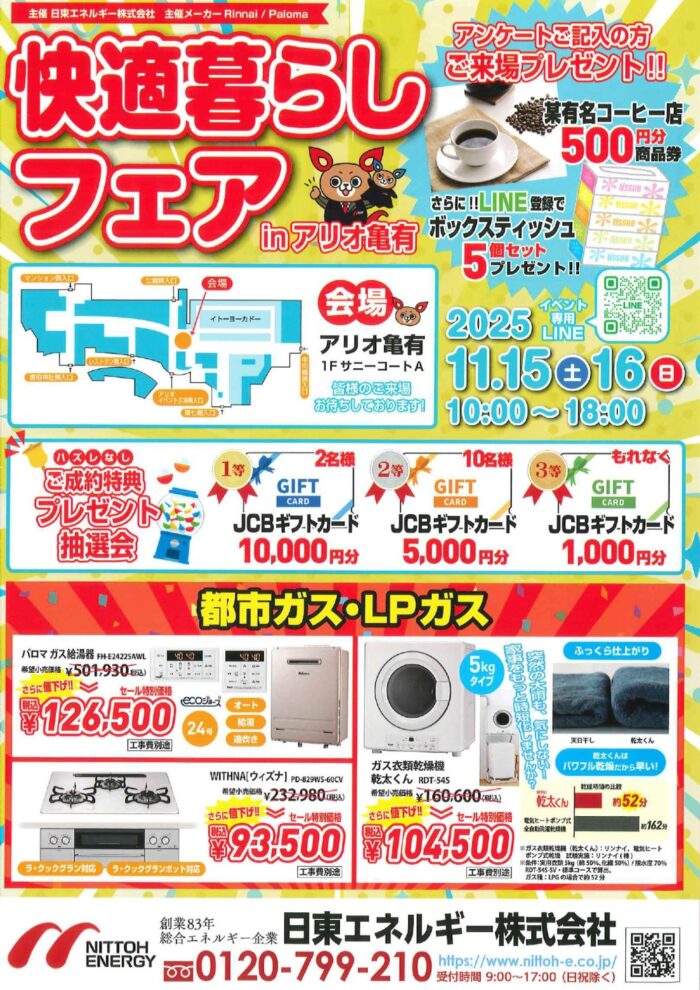 11/15(土)~16(日)に東京都葛飾区のアリオ亀有で、「快適暮らしフェアinアリオ亀有」を開催致します。