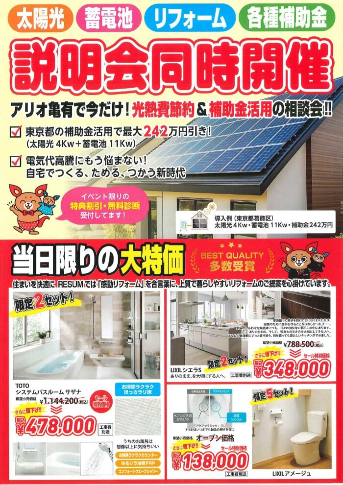 太陽光・蓄電池・リフォーム・各種補助金の説明会・相談会も同時開催!