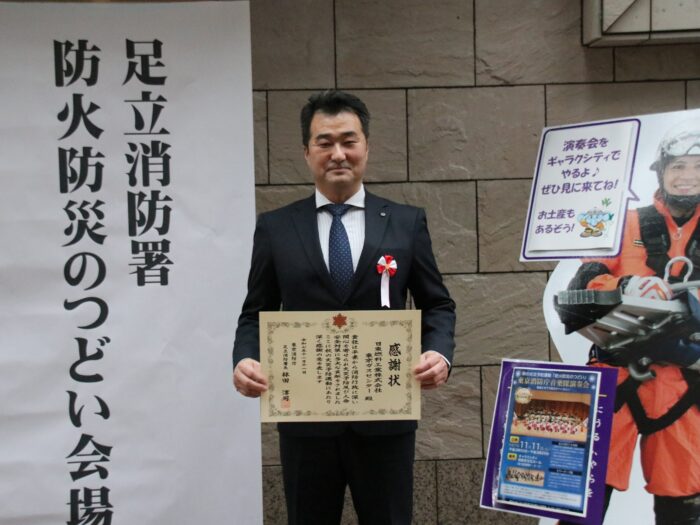 日東燃料工業・東京ガスセンターが、足立消防署より「火災予防業務協力功労」の感謝状を授与されました