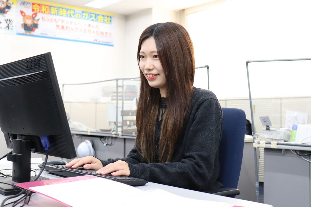 現在私はボンベ配送業務を委託・受託している他社との請求関係の処理や、販売店先のお客様の入転居処理・請求書の作成、営業所宛ての電話対応などを行っています。