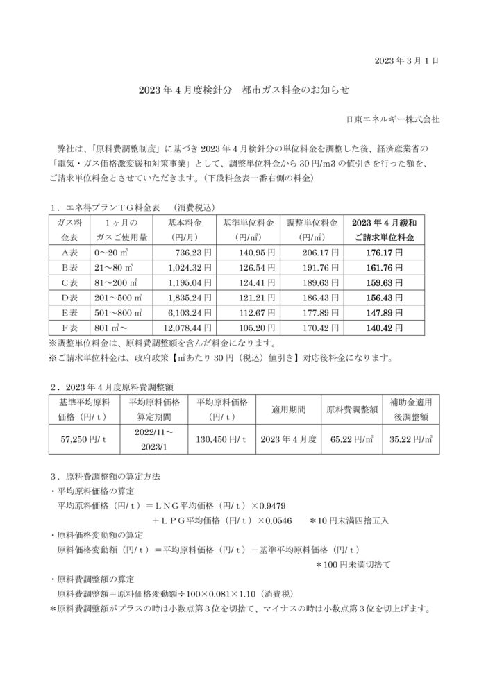 都市ガス料金のお知らせ(東京ガスエリア)2026.3月