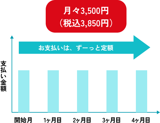 お支払額が毎月均一なので、まとまった出費がなく家計に負担が少なく安心してご利用いただけます。