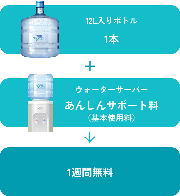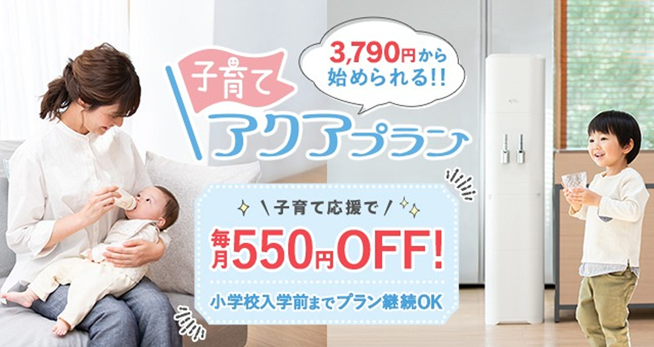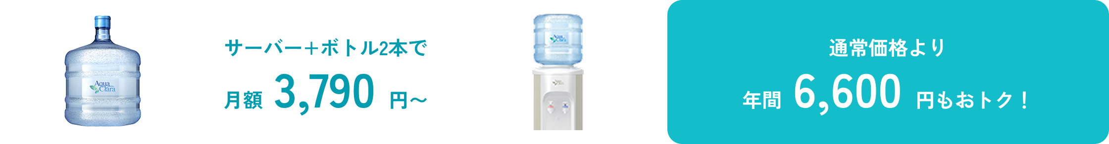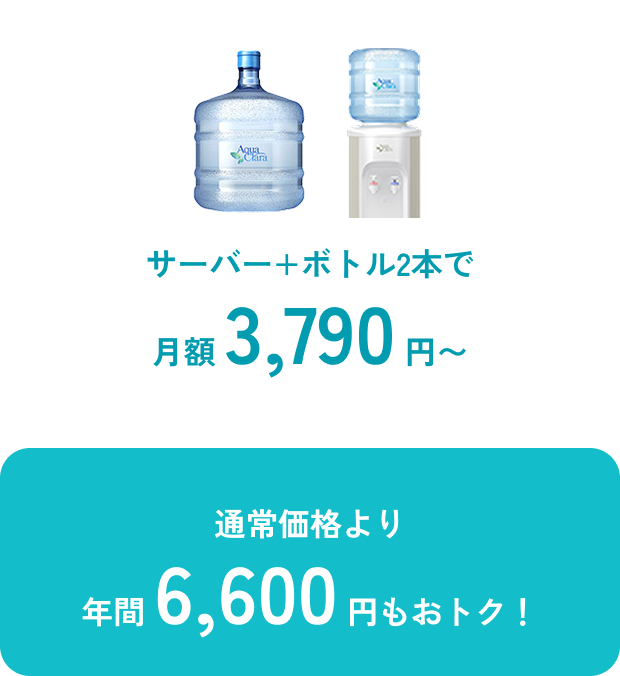 ※税込・宅配料込 ※アクアスリムを利用し、ウォーターボトル2本(24L)を注文した場合 ※サーバーとは、ウォーターサーバーのあんしんサポート料 ※子育てアクアプランの割引は、サンキューセット設置の翌月からとなります。