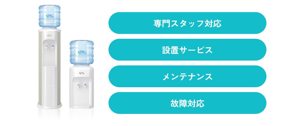 専門スタッフによる配達設置・サーバーの定期メンテナンス・故障対応を含むアクアクララを安心・快適にご利用いただくためのサービスです。