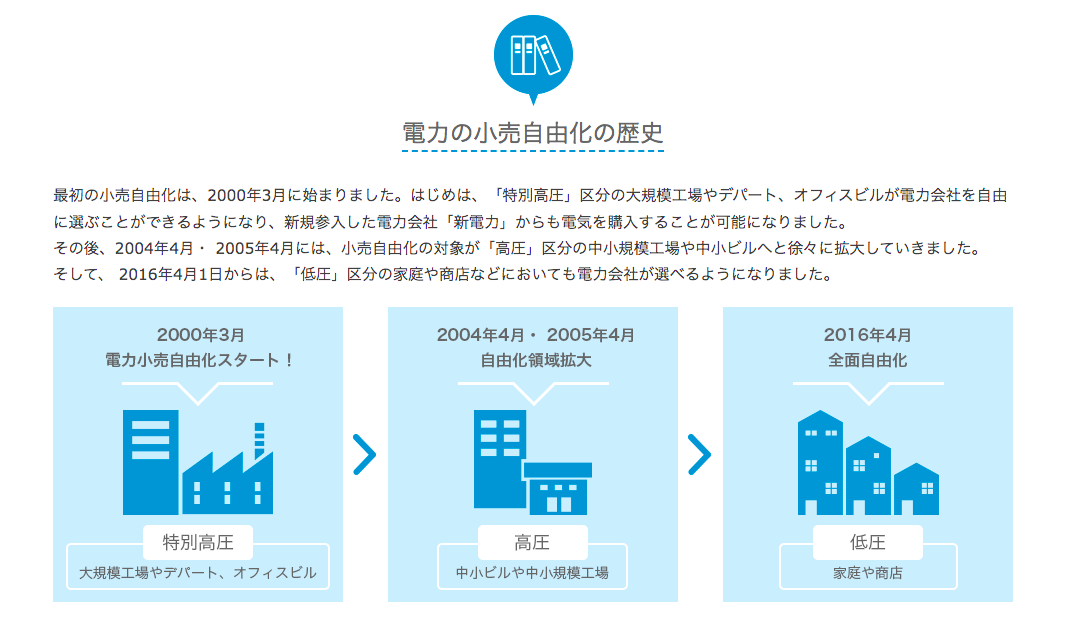 電力自由化は、2016年4月から大々的にスタートしましたが、実は電力自由化自体はもっと前から始まっていました。