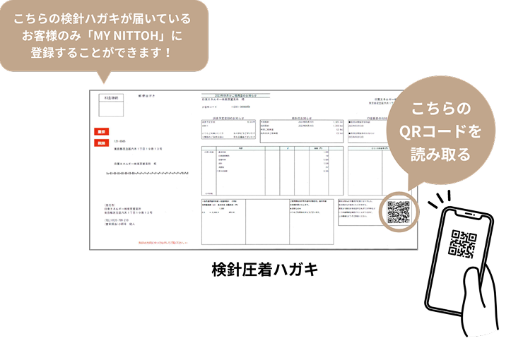 ガスの検針圧着ハガキを開き、右下にある「QRコード」を読み取り「会員情報登録画面」にお進みください。