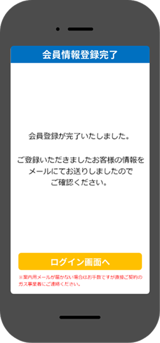 会員情報の登録が終わると、登録したメールアドレスに「notification@gas-look.com」から会員登録完了のお知らせメールが届きます。