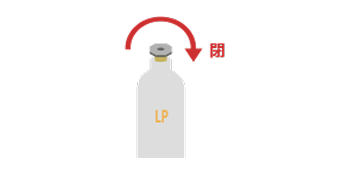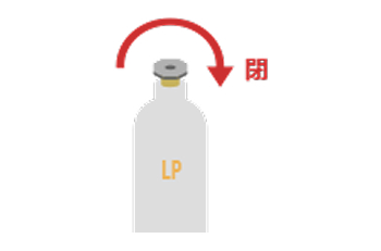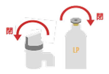ガスを使った後は、元栓、器具栓を完全に閉めます