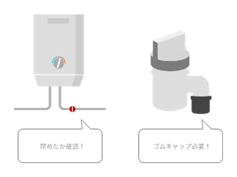 冬場など、給湯器の水抜きをしないまま放置しておくと、給湯器が破裂し水漏れが生じる場合があります。