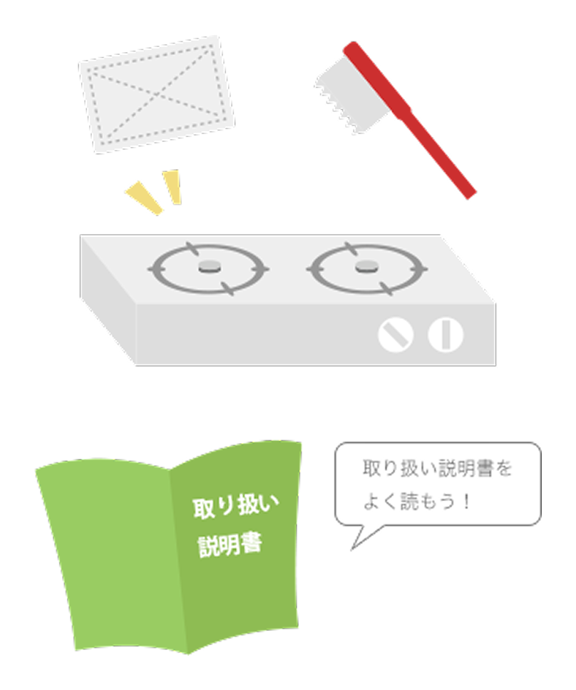 ガス器具を安全に使用するには、取扱説明書をよく読み、普段からお手入れしましょう。