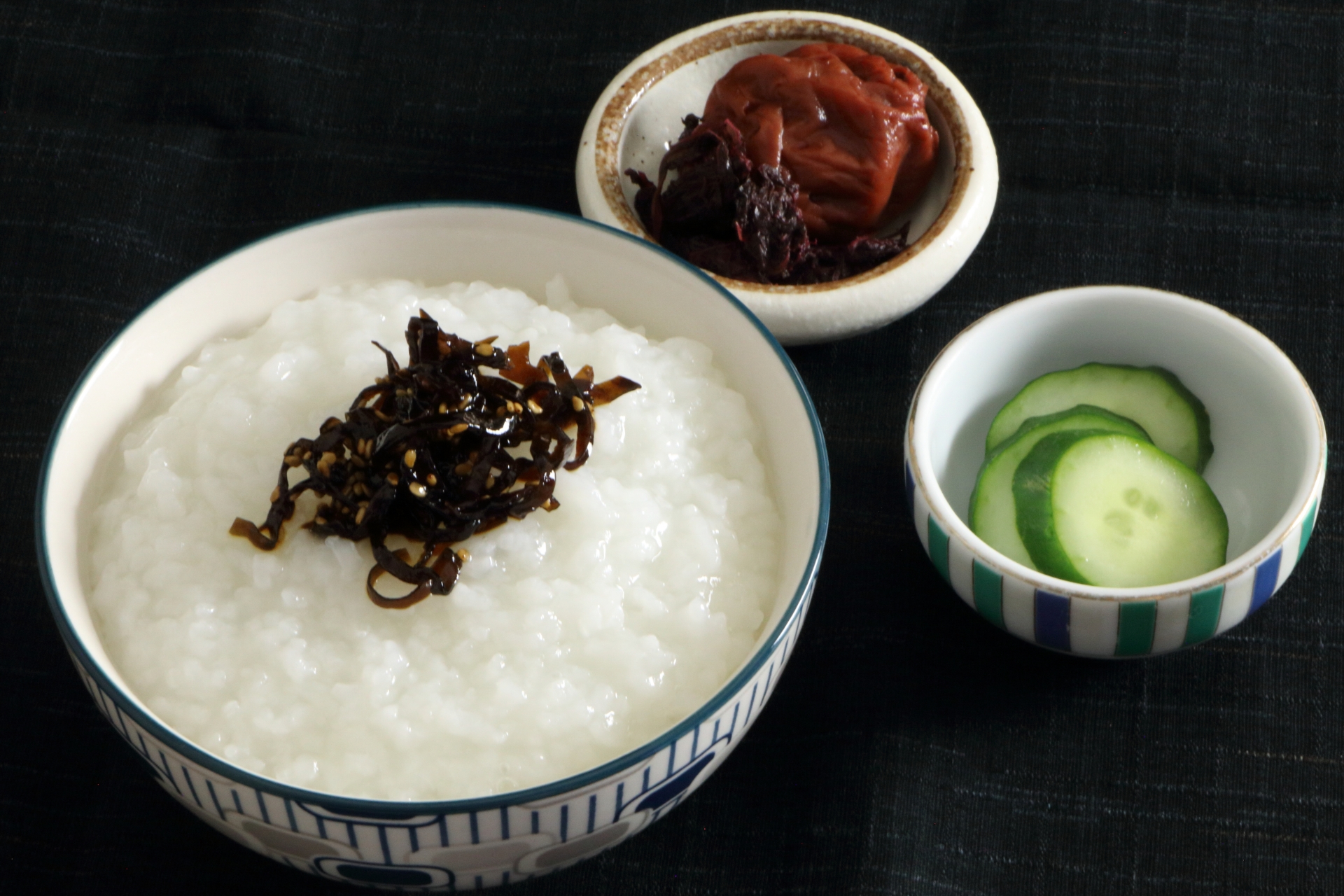 自分で作るなら、炊いたご飯と水、塩を鍋に入れて煮るだけで出来上がり。お好みでダシ顆粒や旨味、チューブのしょうがなどを加えても美味しく食べられます。ふだんから炊いたご飯を冷凍保存しておくと、いざという時に便利です。