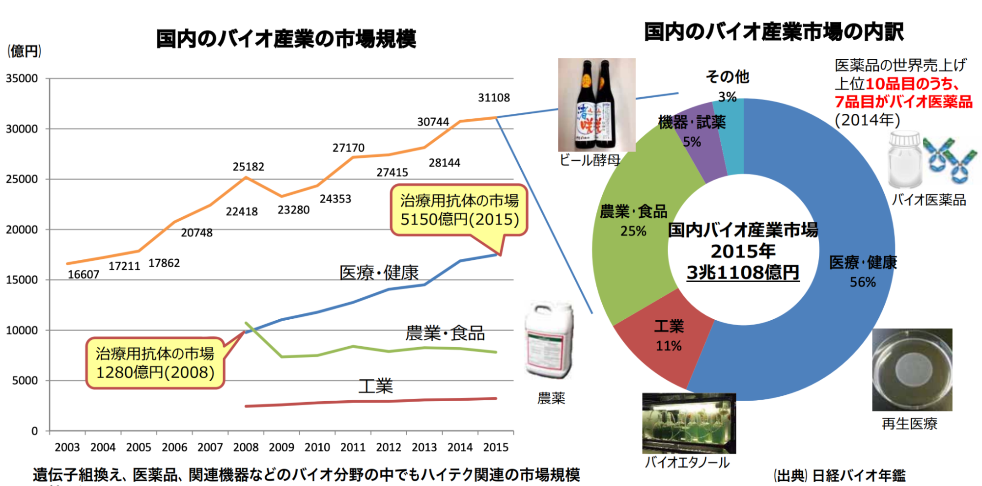 ※出典:「バイオテクノロジーが生み出す新たな潮流~生物機能を用いた新産業創出に向けて~|経済産業省」